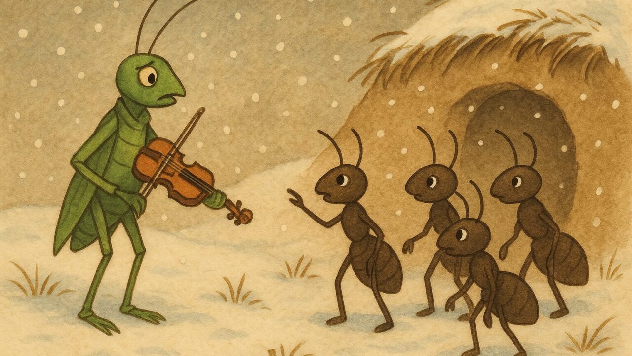 こうして、アリは働き、キリギリスは音楽でアリたちの心を潤しました。